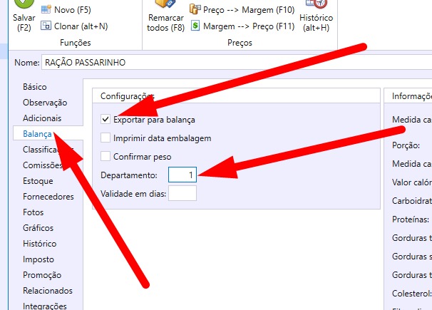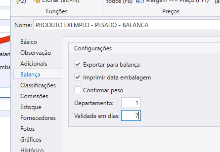 Na Aba Balança, Marque a Flag Exportar para balança e coloque departamento como 1 e coloque qtd de validade em dias se necessário.