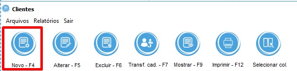 Iniciando o cadastro do cliente, clicar no botão “Novo” conforme tela abaixo.