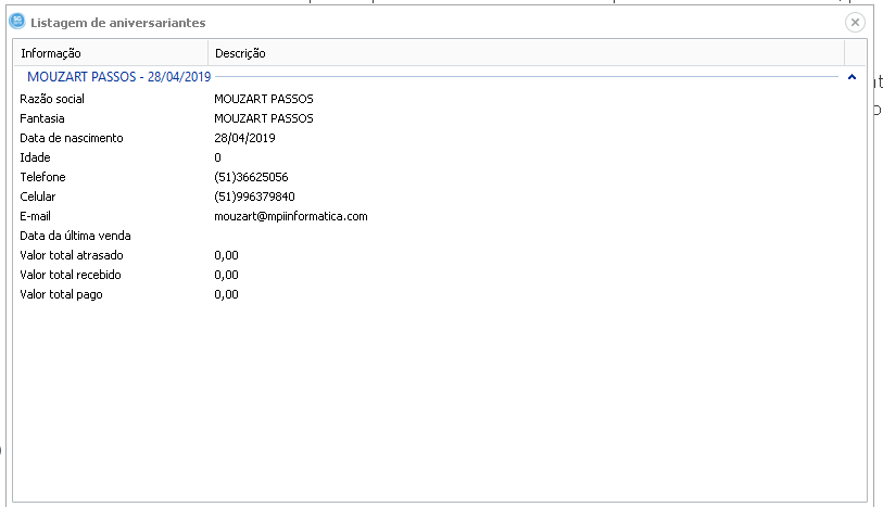 O campo data de nascimento é opcional, porem se preenchido por pessoa física, vai registrar em relatórios e avisos dentro do sistema a data de aniversário do cliente. Se preenchido por pessoa jurídica é considerado o aniversário de fundação. Este campo é opcional.