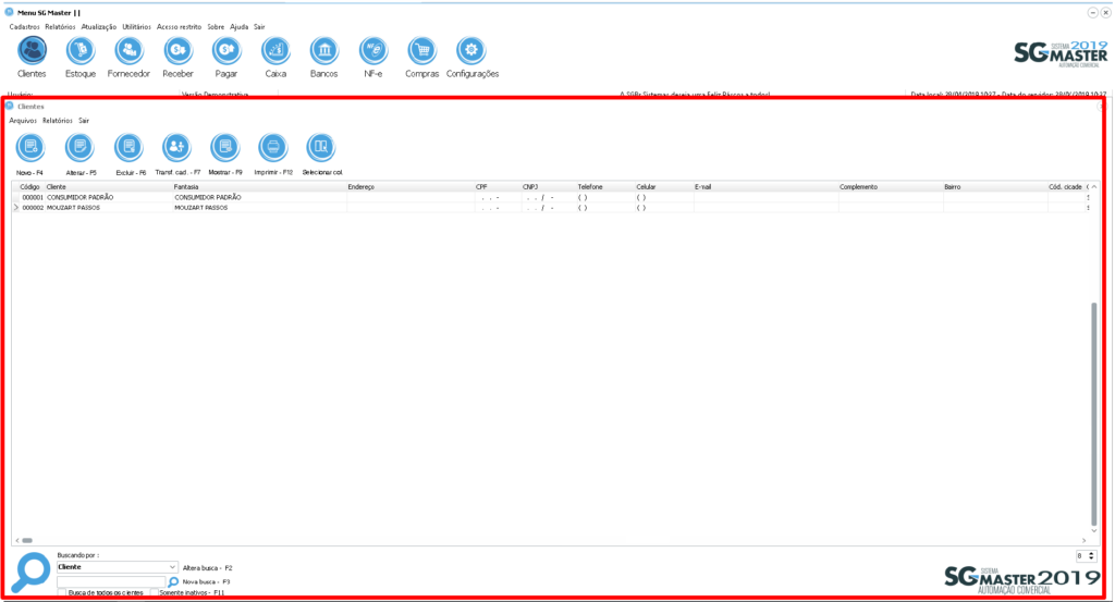 A tela de Clientes será aberta conforme imagem abaixo