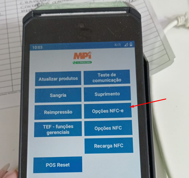 Passo 2: Agora você irá em “opções NFCe” e irá solicitar a senha. OBS: Normalmente é “12345” ou “54321”.