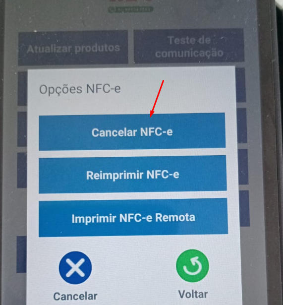 Passo 3: Agora terá opções de reimprimir ou cancelar, pode ir na opção de cancelar nfce