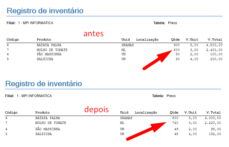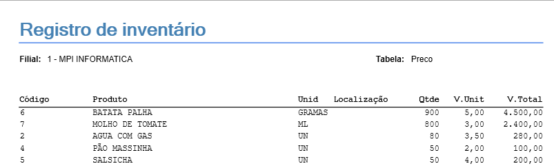 Agora iremos gerar o relatório de estoque novamente e você poderá observar que baixou as quantidades conforme informamos dentro da criação do produto composto / produzido.