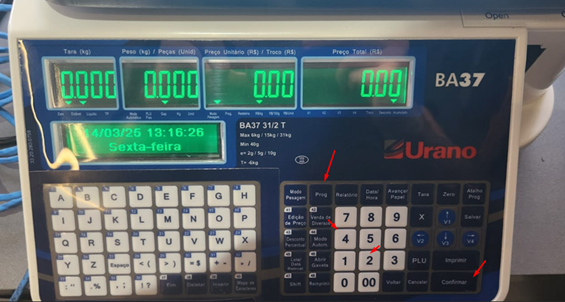 Passo 1: Na sua balança, você irá apertar a tecla “prog” e logo em seguida digitar “42” e confirmar, assim irá aparecer a tela mostrando o Wifi, e se você der um “confirmar” irá aparecer o IP da balança.