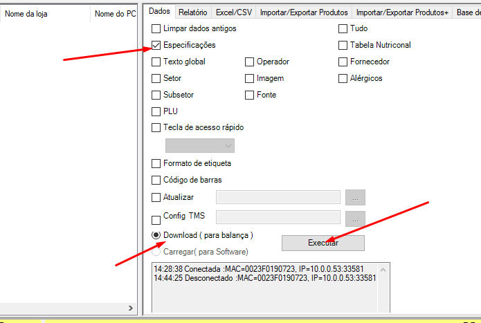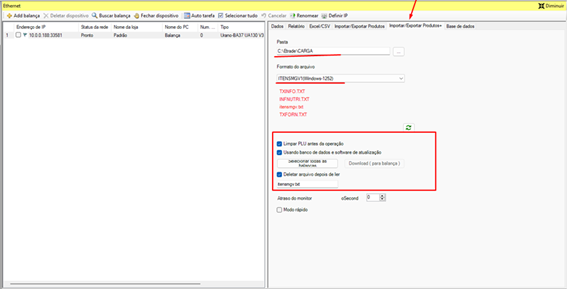 - Clique em ethernet pra enviar as informacoes pra balanca
