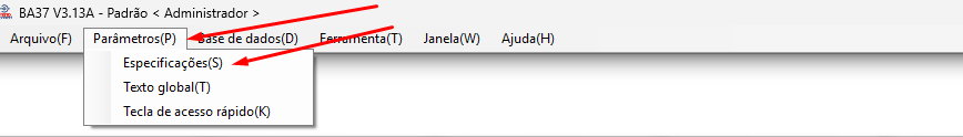 Passo 6: Após configurado vá na aba “parametros” < “especificações” e ali você irá mudar as duas informações abaixo…