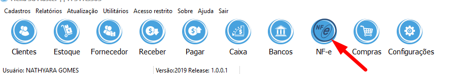 É possivel fazer o envio da Nota Fiscal Eletrônica sem que esteja cadastrado o e-mail no cadastro do cliente, para isso você pode abrir o Menu SG MASTER e ir na aba NF-E, conforme mostra a imagem abaixo.