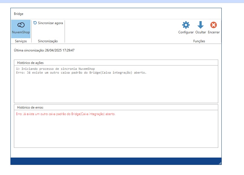 Passo a passo para identificar o problema quando o nuvemshop do cliente não estiver sincronizando… segue foto do erro de simulação: