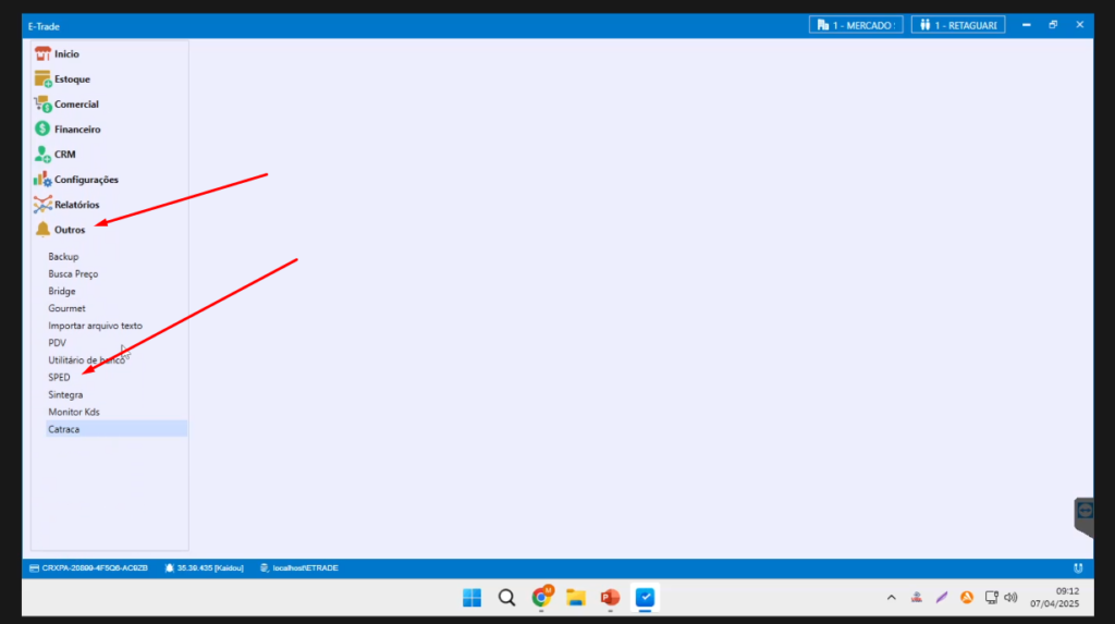 Passo 1: Abra o Etrade e vá na aba “outros” < “Sped”