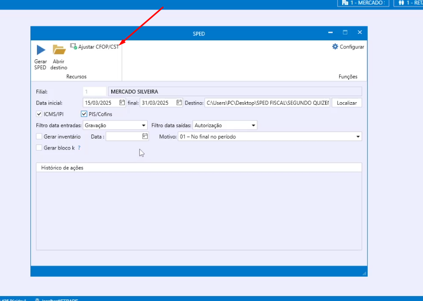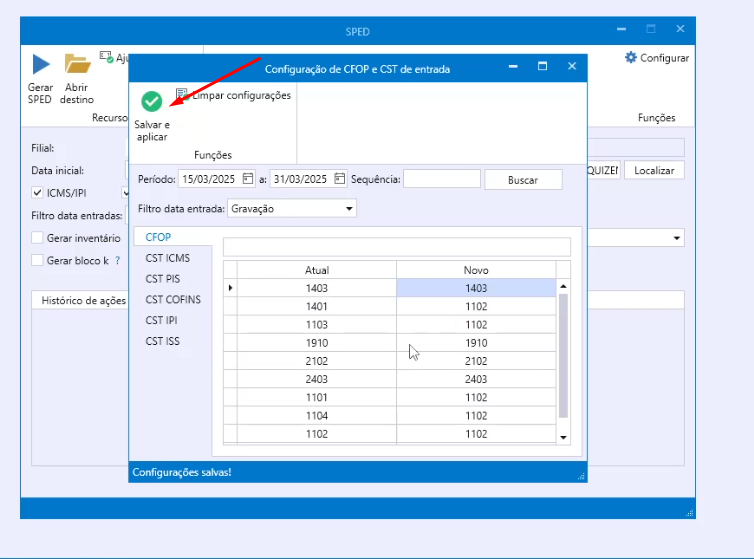 Passo 3: Sempre vá em “ajustar CFOP/CST” e depois aperte em “salvar e aplicar”
