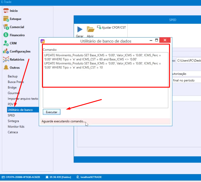 Passo 4: Feito isto, abra o “utilitário de banco” e rode este comando abaixo: