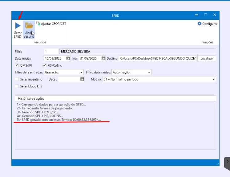 Passo 5: Feito isto vá em “gerar SPED” e mande os arquivos para a contabilidade